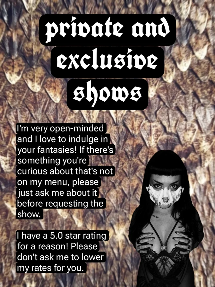 Ahegao, Blowjob, Camel Toe, Cock Rating, Cooking, Dildo or Vibrator, Flashing, Foot Fetish, Handjob, Nipple Toys, Oil Show, Sex Toys, Spanking, Topless, Cowgirl, Dirty Talk, Facesitting, Fingering, Humiliation, Orgasm, Striptease, Tittyfuck, Jerk-off Instruction